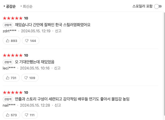 영화 그녀가 죽었다는 개봉 당시 호불호가 갈렸지만, 대부분은 극찬에 가까웠습니다. 관객 평점은 평균 8점대. 현실과 맞닿은 주제를 깊이 있게 다뤄 많은 이들에게 공감과 충격을 동시에 안겼습니다. 특히 연출과 배우들의 연기력은 호평의 중심이었죠