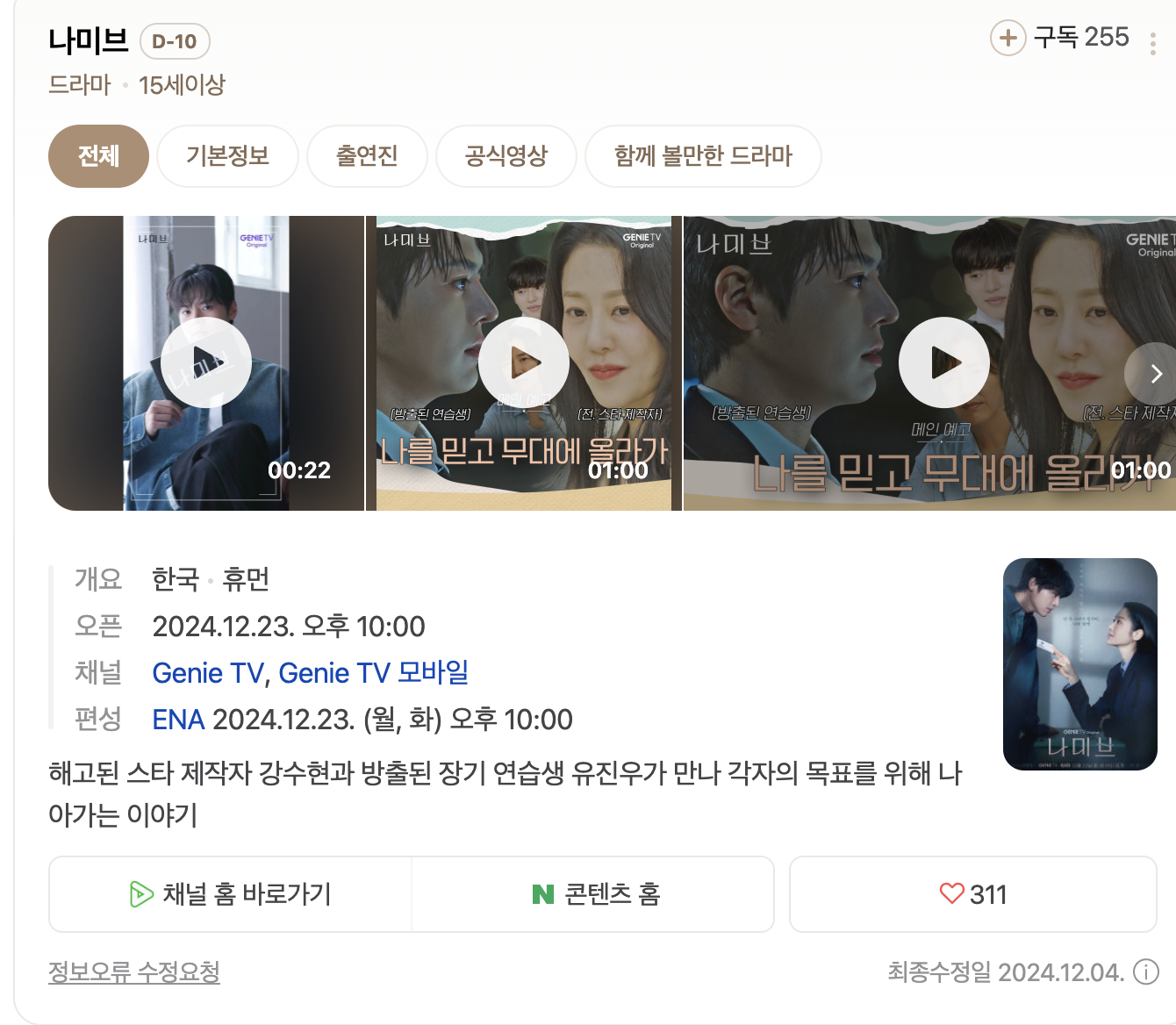 - 첫방송 : 2024년 12월 23일 오후 10시