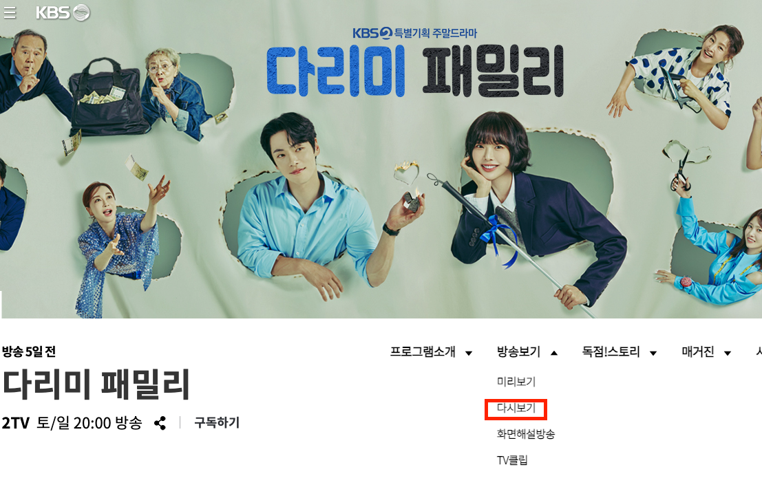 컴퓨터로 다시보기를 보실 분들은 공식 홈페이지를 이용하는 것이 가장 좋습니다. KBS 드라마는 방송일 ~1년까지 무료로 VOD 서비스를 제공하기 때문입니다. 하지만 모바일로 볼 경우에는 방송일로부터 3주 이후부터 무료로 볼 수 있기 때문에 이점은 참고해주세요!