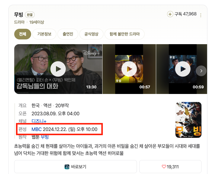 MBC에서 만나는 ‘무빙’의 방송 일정