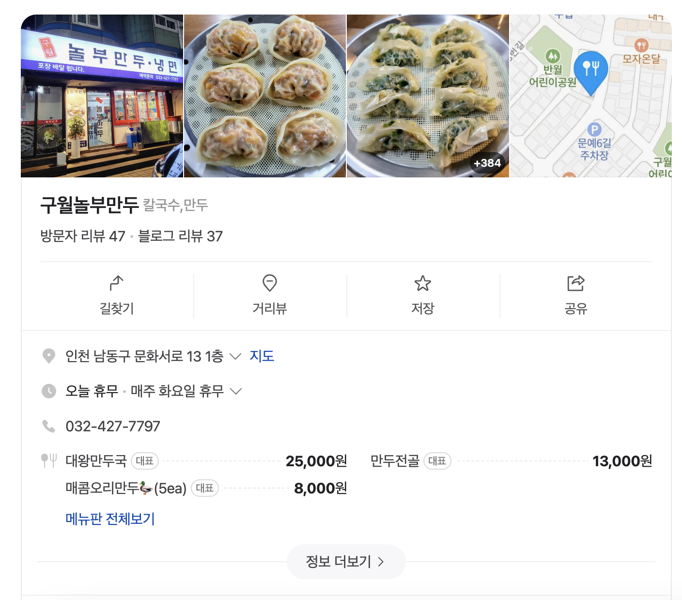 - 위치: 인천시 남동구 문화서로 13 (놀부만두)