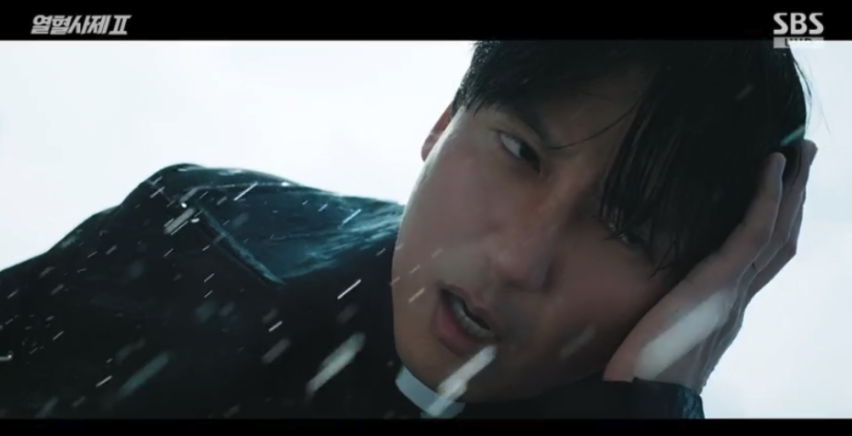 김해일은 후원 행사 도중 잠입팀의 전화를 받고, 김홍식과 빗속에서 대립하게 됩니다. 김해일은 통증을 느끼며 싸움을 이어갔고, 한성규 신부는 박경선에게 도움을 요청합니다. 그 순간 박경선에게 걸려온 전화가 김해일의 목숨을 구하는 중요한 역할을 하게 됩니다.