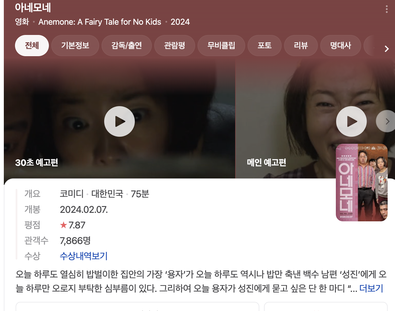 2024년 2월 7일에 개봉한 영화 ‘아네모네’!