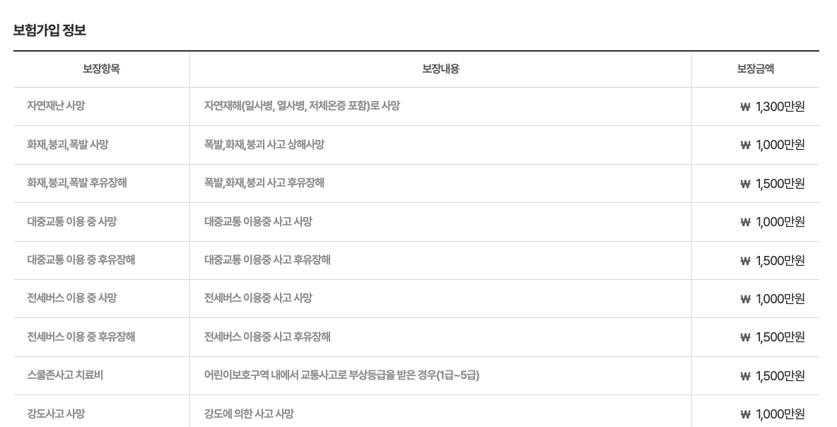- 최대 2,000만 원까지 보장되며, 지역별로 보장 여부와 한도가 다를 수 있으니 확인이 필요합니다.
