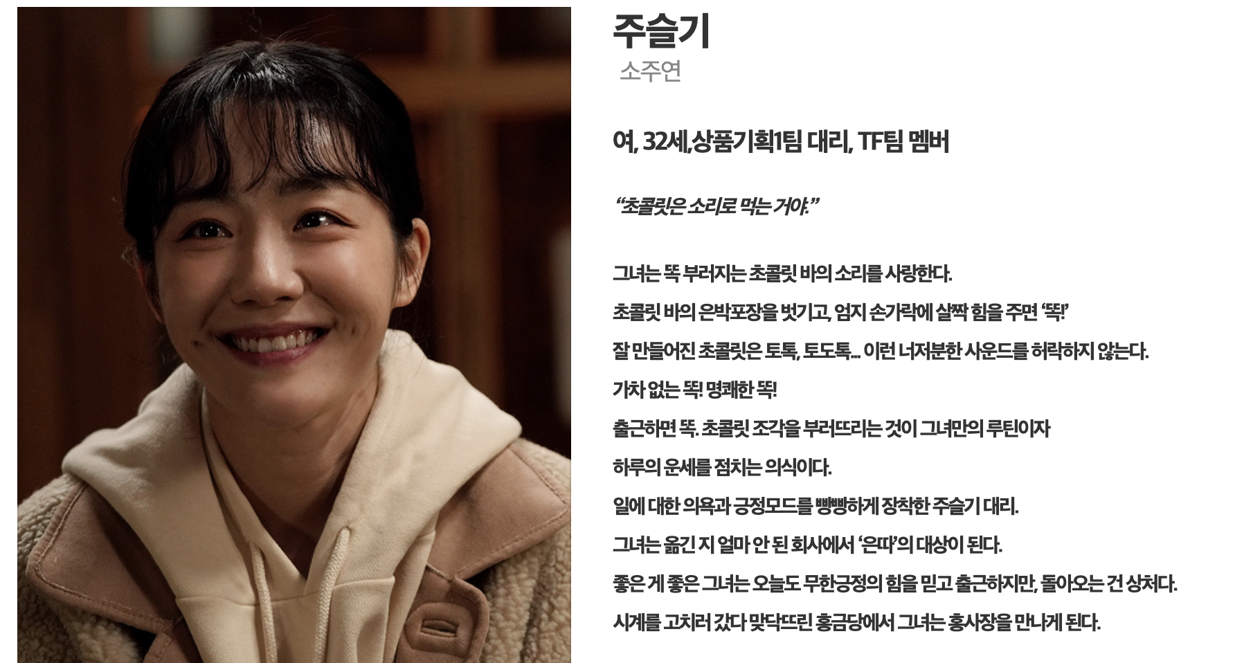주슬기 (소주연) – 초콜릿을 사랑하는 상품기획자