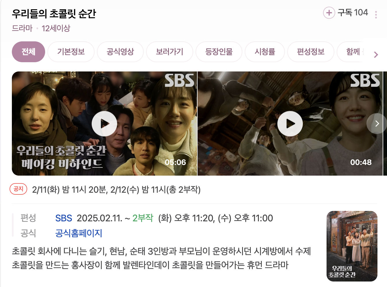발렌타인데이가 다가오면서, 연인들을 위한 특별한 힐링 드라마가 등장했습니다! 바로 SBS의 ‘우리들의 초콜릿 순간’인데요. 초콜릿과 사랑이 어우러진 이 드라마는 달콤한 감성과 따뜻한 스토리로 시청자들의 마음을 녹일 준비를 마쳤습니다.