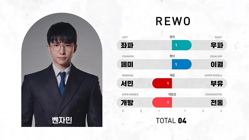 12명의 참가자는 각자 정치적, 성별 관련, 경제력, 전통과 개방 등 다양한 사회적 가치관을 대표합니다.