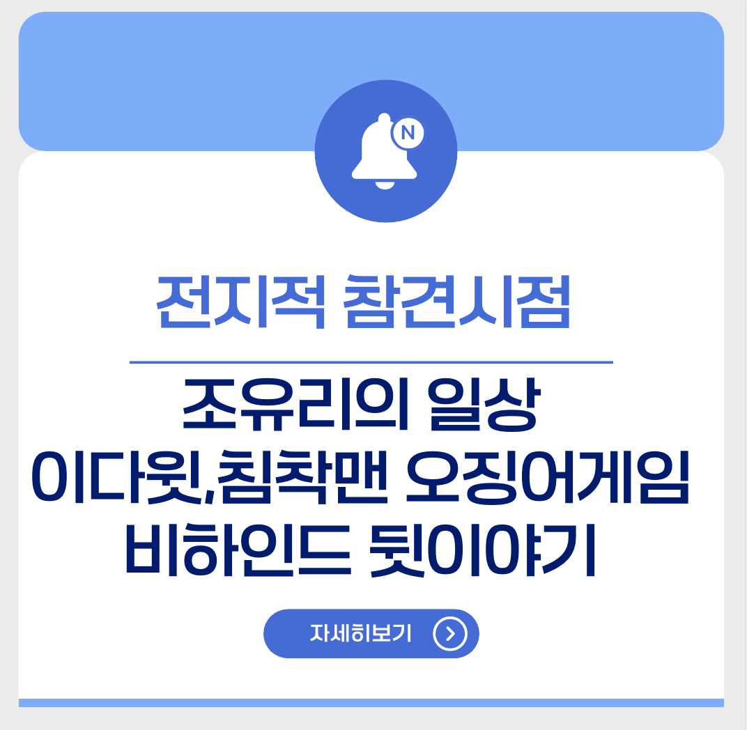 조유리 이다윗 오징어게임3 비하인드 집 최초 공개 침착맨 인연 이라는 키워드를 중심으로, 7월 12일(토) 방송된 MBC **‘전지적 참견 시점’(355회)**에서 조유리는 집과 일상, 그리고 오징어게임3 비하인드부터 침착맨 콜라보까지 볼거리를 가득 담아 시청자의 눈길을 사로잡았습니다.