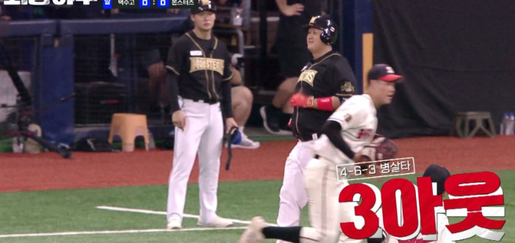 몬스터즈 공격에서 9번 유태웅이 볼넷으로 출루했지만, 뒤이어 병살타가 나오며 득점 기회는 무산되었습니다.