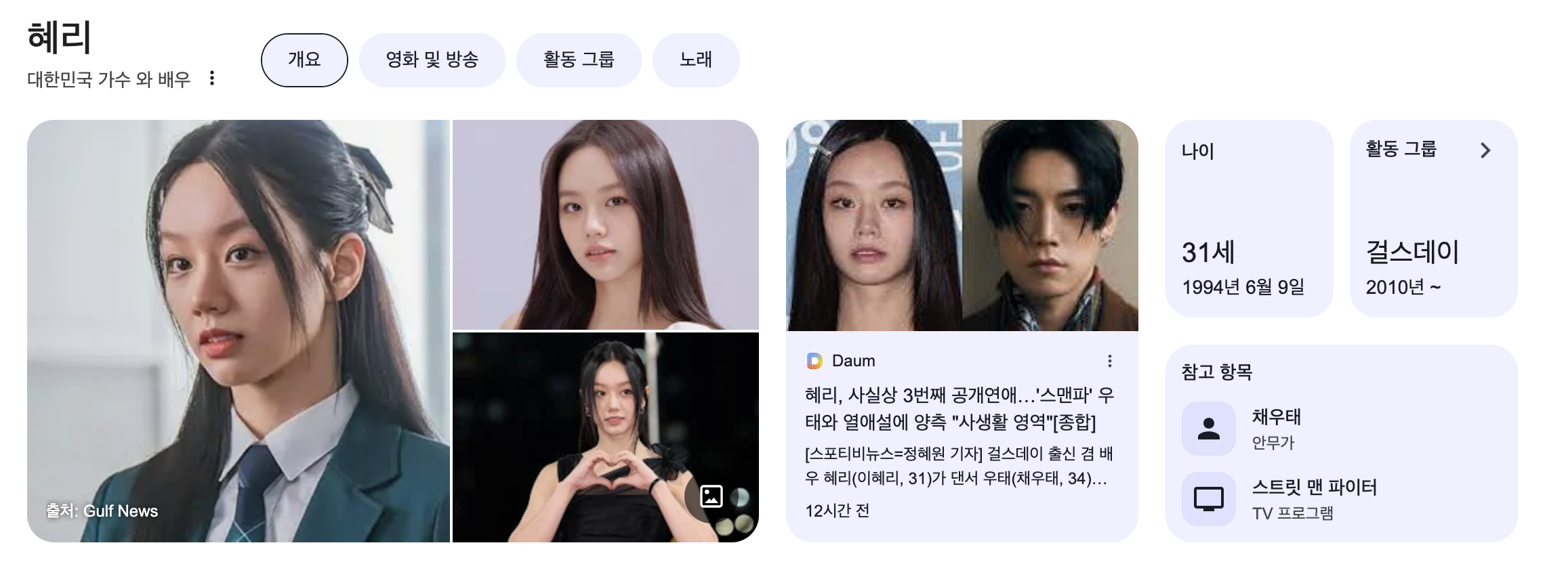 2025년 7월 1일, 가수 겸 배우 혜리와 댄서 우태의 열애설이 공식화에 가까운 분위기로 보도되며 팬들 사이에서 큰 화제를 모으고 있습니다.