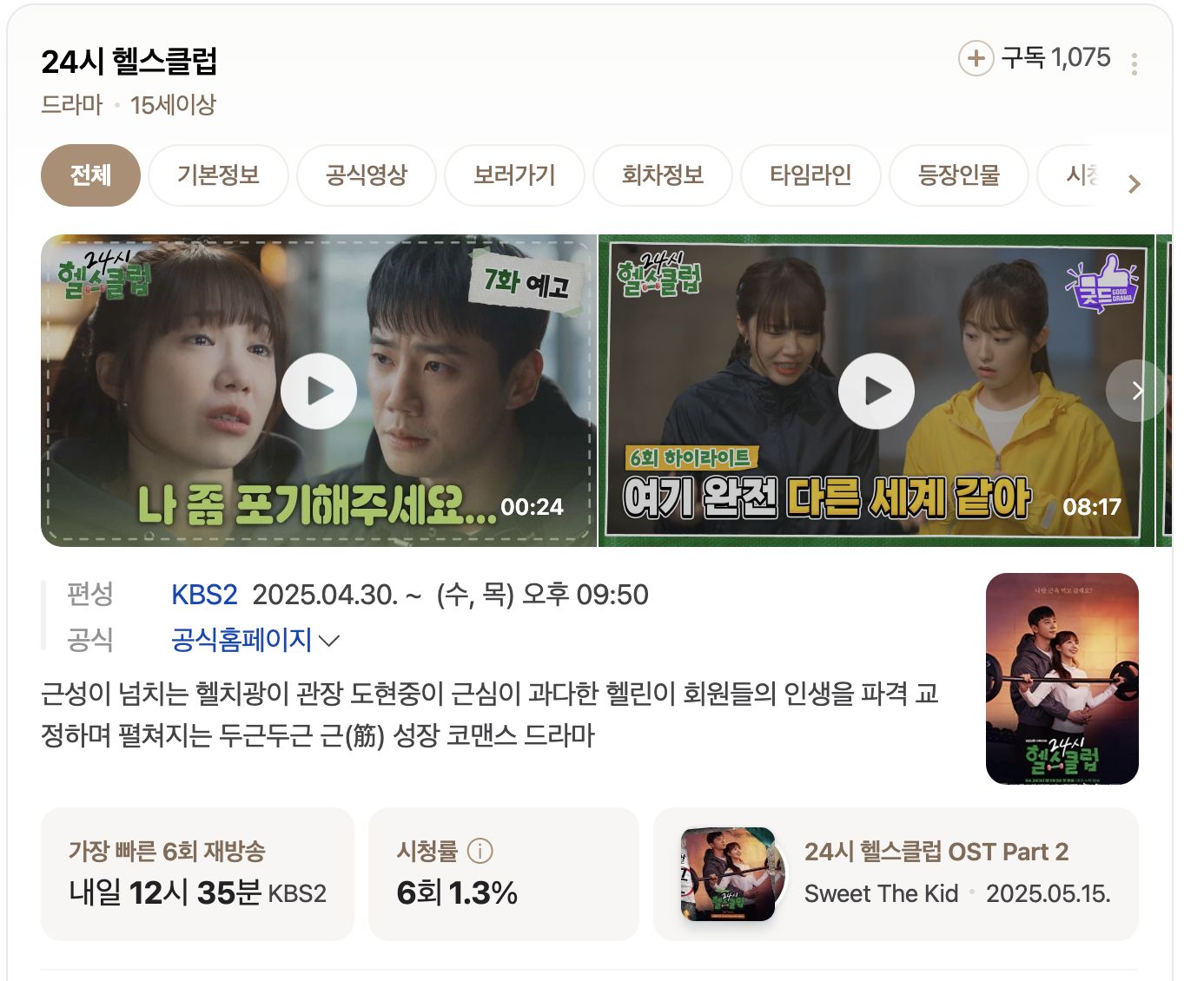 2025년 KBS2 수목드라마 라인업 가운데 가장 눈에 띄는 작품이 있습니다. 바로 **'24시 헬스클럽'**입니다. 제목만 보면 평범한 헬스장 이야기 같지만, 이 드라마는 코미디, 로맨스, 힐링, 인간관계까지 모두 담아낸 종합세트 같은 매력을 자랑합니다.